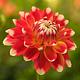Daar word je toch vrolijk van?! Deze prachtige veel kleurige dahlia. Geel in het hart Oranje rood en Witte punten. Een feestje op een steeltje.