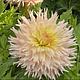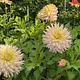 Prachtige gefranjerde dahlia met forse bloemen in roze champagnekleur en roomwit