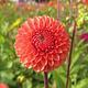Volledig oranje balvormige dahlia. Hoge planten met de bloemen op lange stelen. Heerlijk om van te snijden.